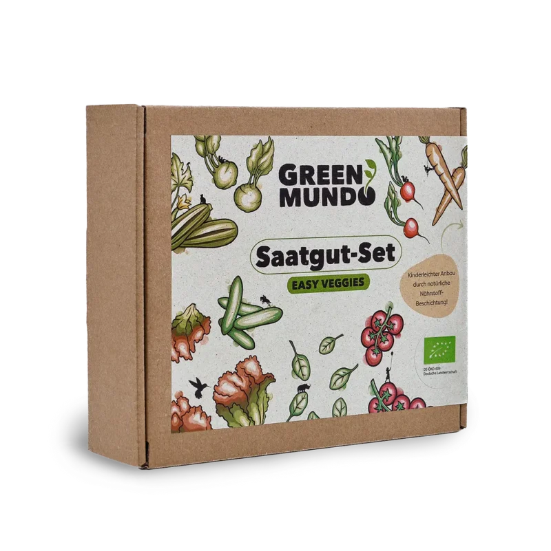 Starte jetzt dein eigenes Gemüse-Abenteuer mit dem Saatgut-Set EASY VEGGIES! Dieses liebevoll zusammengestellte Set enthält 9 Sorten ökologisches, samenfestes Saatgut – ideal für Einsteiger, Balkon-, Hochbeet- und Gartenbesitzer. Das Set enthält folgende Sorten: Basilikum, Gurke, Möhre, Kohlrabi, Radieschen, Salat, Spinat, Tomate & Zucchini.