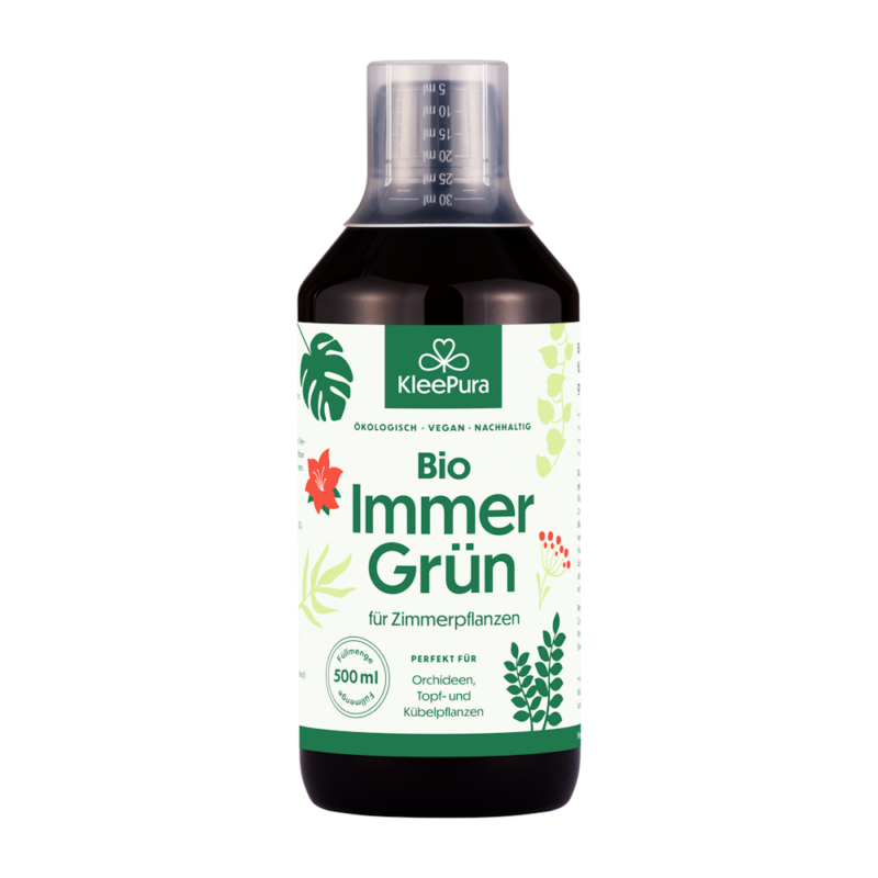 KleePura Bio ImmerGrün ist die ausgewogene Zimmerpflanzenpflege für vitales und gesundes Wachstum bei allen Zimmerpflanzen, Hydrokulturen und Orchideen. Ein Pflanzenelixier für widerstandsfähige Pflanzen mit glänzenden Blättern und einer langanhaltenden Blüte.